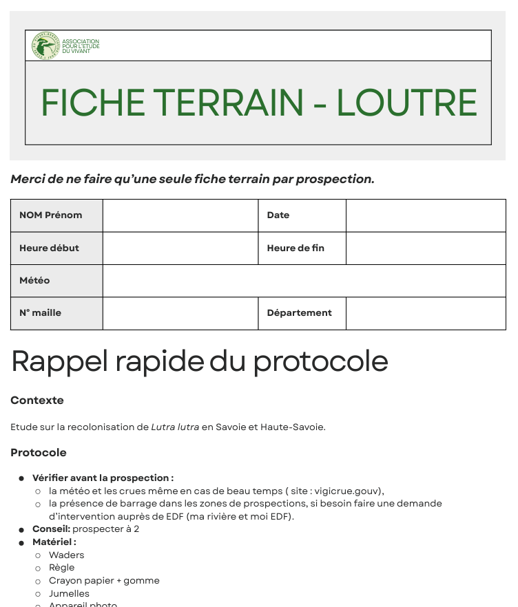 Fiche terrain - Loutre